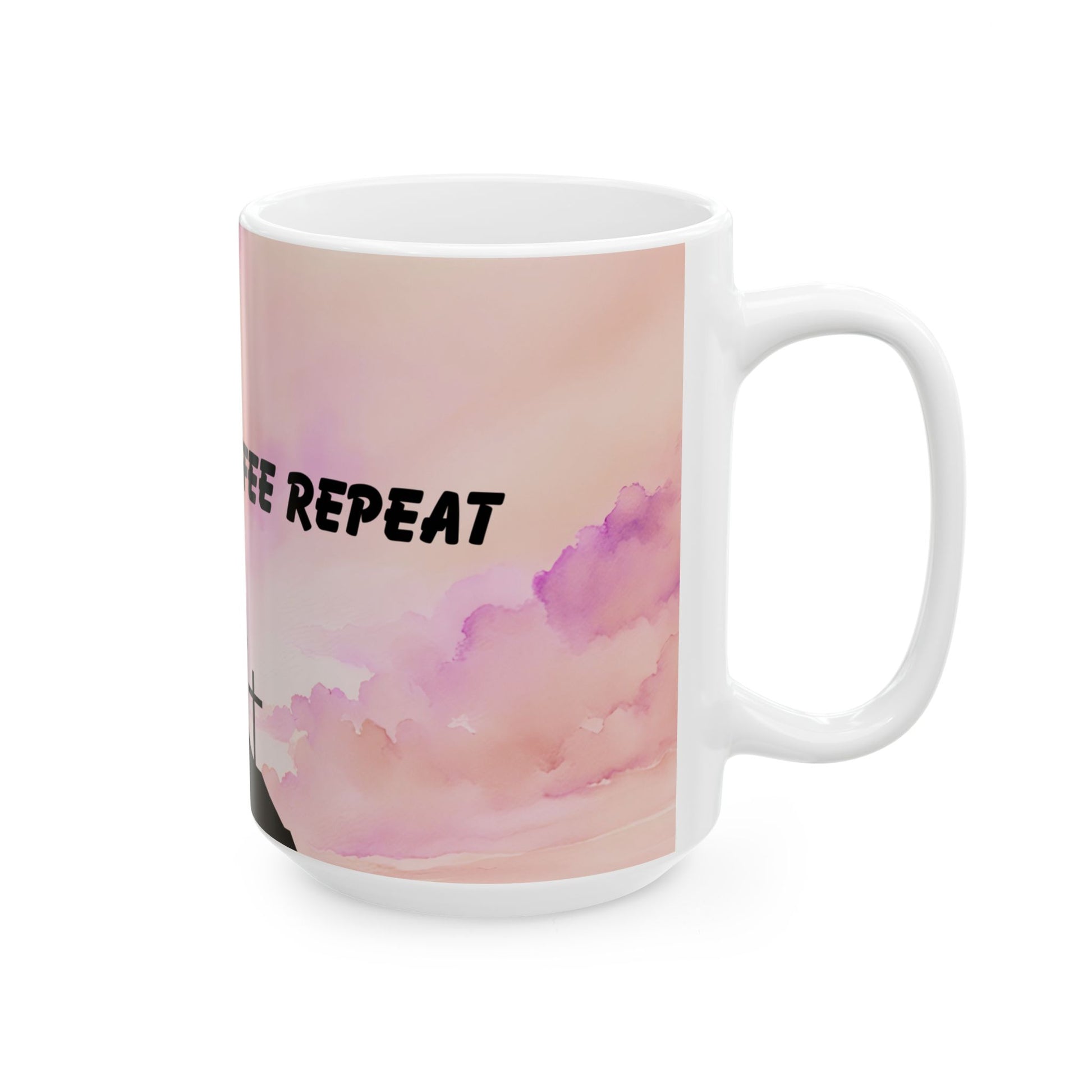 Coffee Mug, Rise Pray Coffee Repeat, Hibiscus Pink